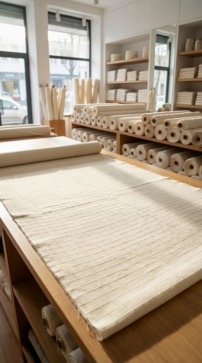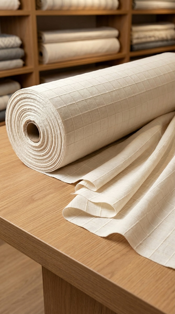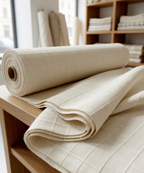 Buldan dokuması natural krem renk monika kumaş modeli.