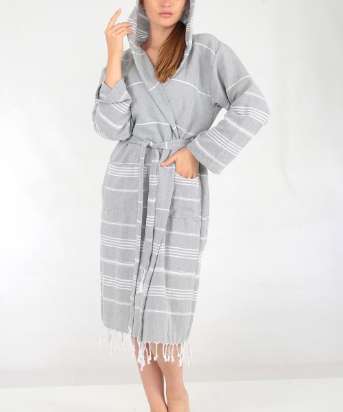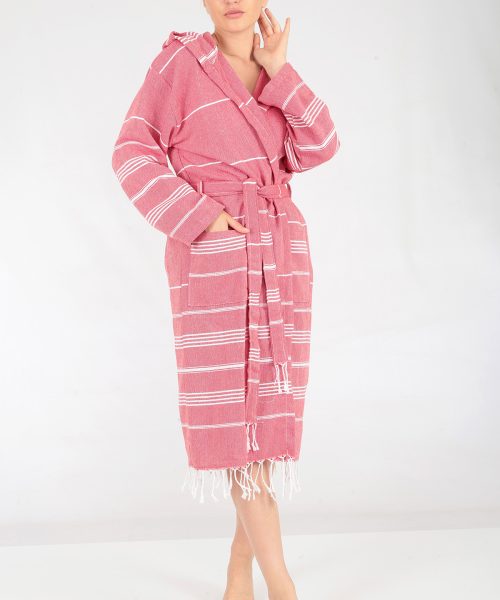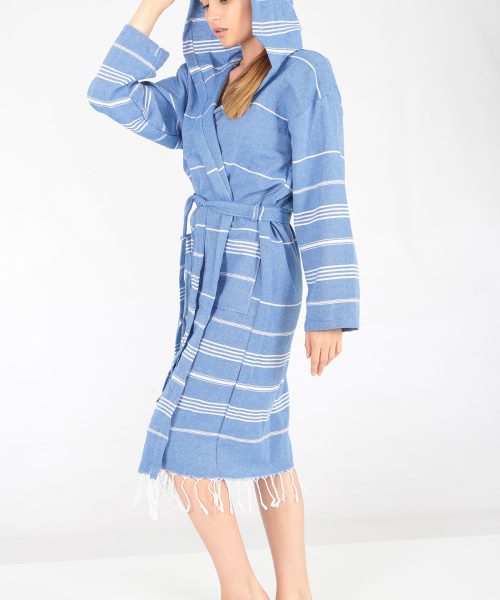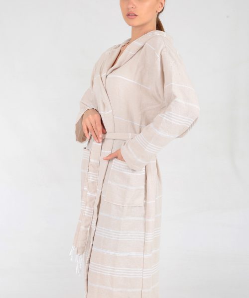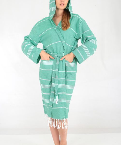 Miranda peştemal bornoz, rejenere pamuktan üretilen peştemal ürünlerimizden olan Miranda serisi peştemalden dikilmiştir.Hafif ve rahat kullanımlı miranda bornoz serimiz mağaza satışınız, internetten satışınız yanında hamam, spa, masaj salonu, butik otel veya ihracat için son derece uygun bir üründür.